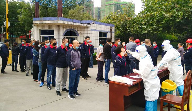 受青島疫情影響,為防止疫情擴(kuò)散傳播,2020年10月13日上午,宏泰接同和黨委通知,在公司臨時設(shè)立核酸檢測點,為員工進(jìn)行核酸檢測。